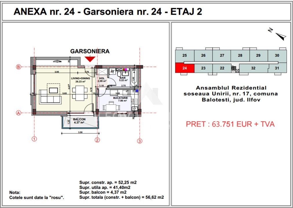 UNIRII APARTAMEN’T S BALOTEȘTI – GARSONIERĂ, POZIȚIE EXCELENTĂ LÂNGĂ THERME ȘI DN1 VALUE CENTRE
