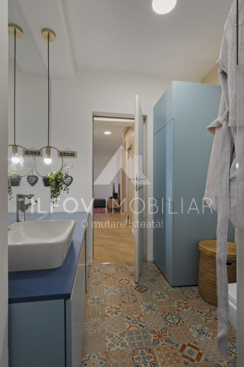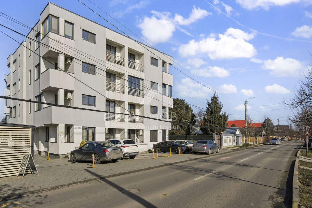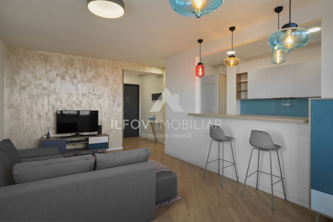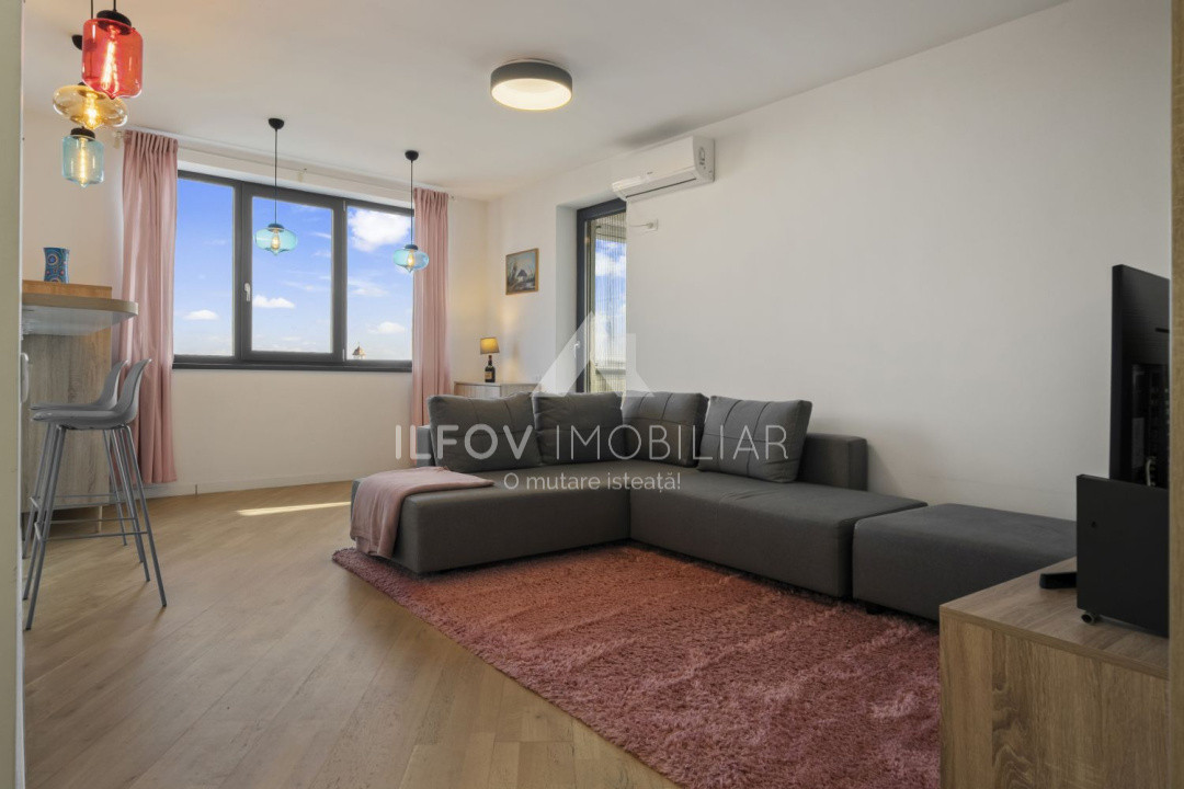Situat la etajul 3/3 si avand o suprafața totala de 59,4 mp si suprafata util 55,4 mp, balcoane închise cu geamuri glisante și plase de țânțari tip plisé. Locuința se remarcă prin finisaje premium și dotări complete, incluzând uși Filomuro, încălzire în pardoseală, aer condiționat, dressing, bucătărie mobilată și utilată complet cu electrocasnice (frigider incorporat, masina de spalat vase incorporata, cuptor cu plita inductie/gaz si hota), baie echipată cu mașină de spălat și uscător.