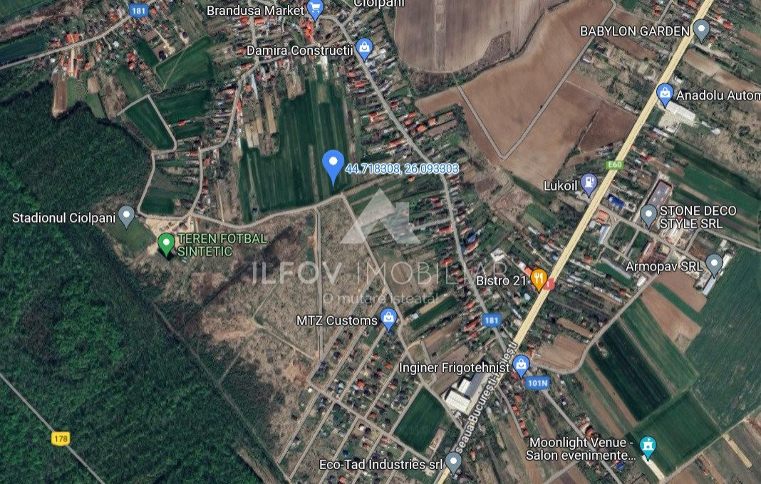 CIOLPANI – LOT 6.525MP TEREN INTRAVILAN PARCELAT IN 9 LOTURI, ACCES DIN STRADA ALUNULUI, APA SI CANALUL TRASE RECENT, ASFALT, PADUREA LA 300M, 1 MINUT DIN DN1, IDEAL INVESTITIE